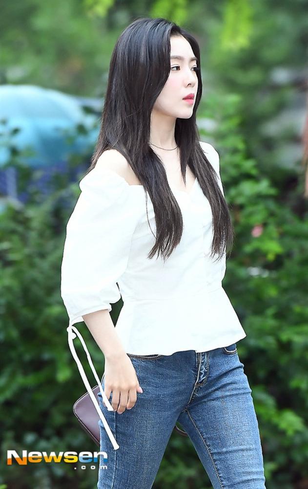 Irene cũng "phải lòng" chiếc áo tay bồng mà "nữ hoàng dao kéo" xứ Hàn Park Min Young từng diện trước đó. Nữ ca sĩ khéo léo mix cùng quần jeans gây thu hút.