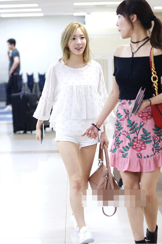 Có mặt tại sân bay Gimpo, Taeyeo thể hiện gu thời trang năng động và chiếc túi Givenchy Pandora.