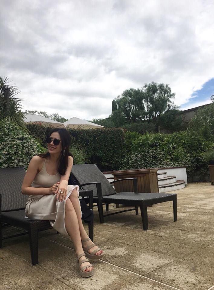 Son Ye Jin quyến rũ hết nấc trong mẫu đầm hai dây đơn sắc kết hợp dép đế cao tôn dáng.