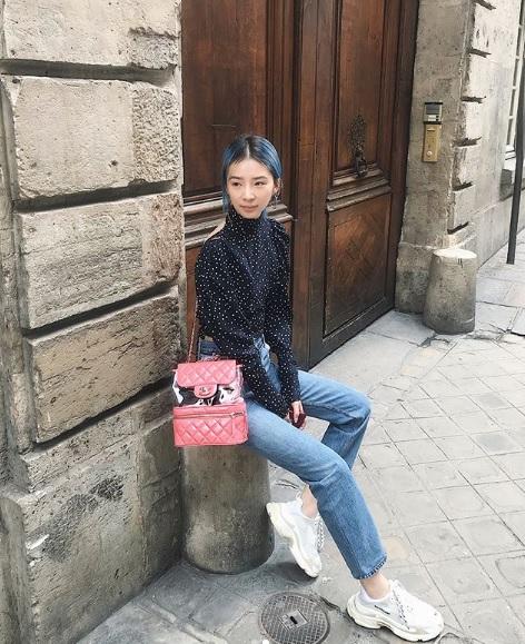 Nàng mẫu đình đám xứ Hàn Irene luôn biết cách làm mình nổi bật trên phố. Mái tóc luôn được biến hóa màu sắc tài tình để phù hợp với từng bộ cánh. Tuần này, mỹ nhân xứ Hàn "lên đồ" cùng áo tay bồng kết hợp quần jeans, giầy sneaker và balo nhà Chanel.