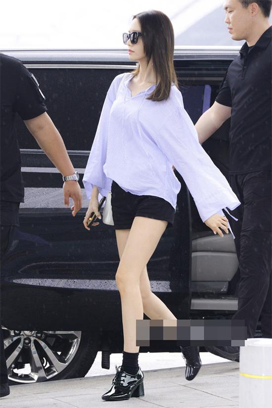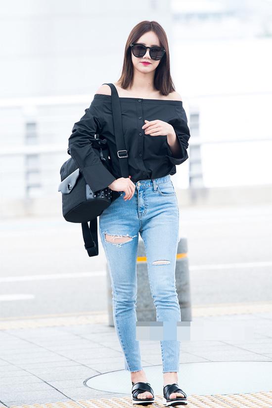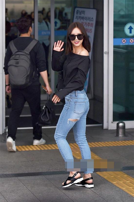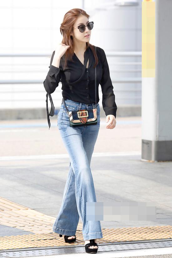 đen thanh lịch. Khoảnh khắc xinh xắn của cô tại sân bay Incheon