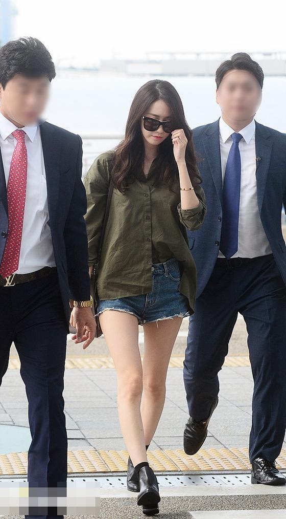 Yoona vẫn chuộng mốt quần shorts ngắn. Lần ra đường này, cô