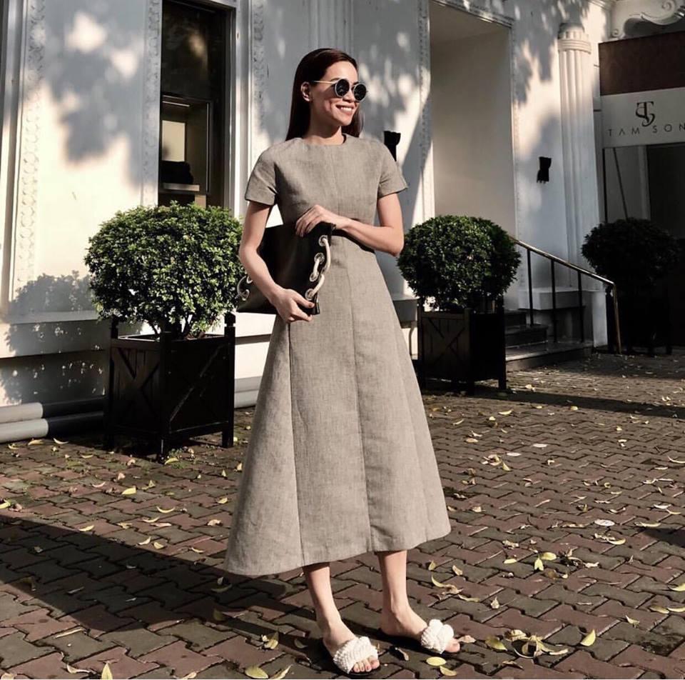 Hồ Ngọc Hà yêu kiều trong bộ đầm đơn sắc mang dấu ấn cổ điển của NTK Đặng Hải Yến. Giọng ca “Destiny” hoàn thiện phong cách retro bằng dép bệt thoải mái và kính râm mắt tròn.