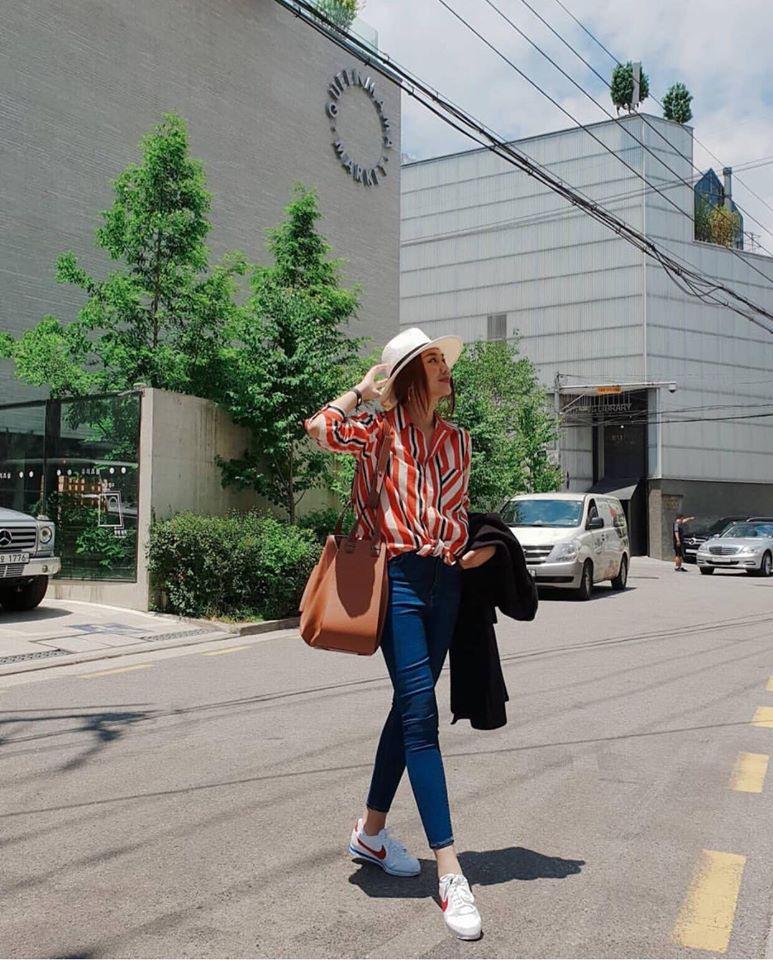 Thanh Hằng trung thành cùng phong cách giản dị vẫn đẹp hết nấc. Combo áo sơ mi, quần jeans