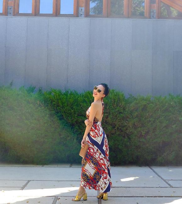 "Big Girl Don't Cry" nổi bật trên phố cùng váy họa tiết kết hợp giày vàng và clutch