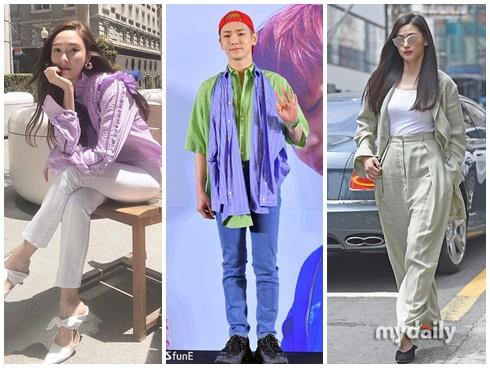 Chi Pu thu hút mọi ánh nhìn khi mix hai sắc màu tương phản áo cổ lọ xanh, chân váy đỏ và túi Chanel đắt đỏ.