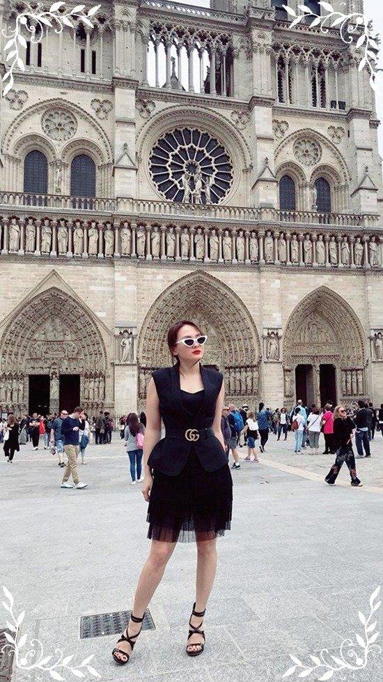 Bảo Thanh khoe street style sang chảnh ở trời Âu cùng cả set đồ đen nhấn nhá bằng phụ kiện thắt lưng Gucci.