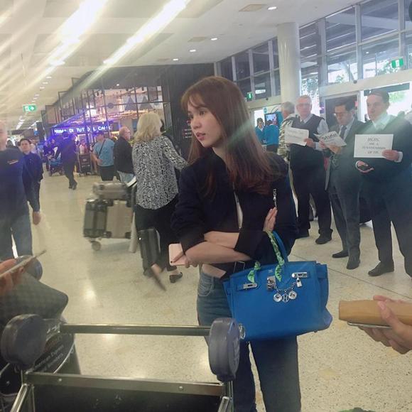 áo sơ mi đen. Điều đáng chú ý là cô thể hiện đẳng cấp qua chiếc túi Hermes Birkin màu