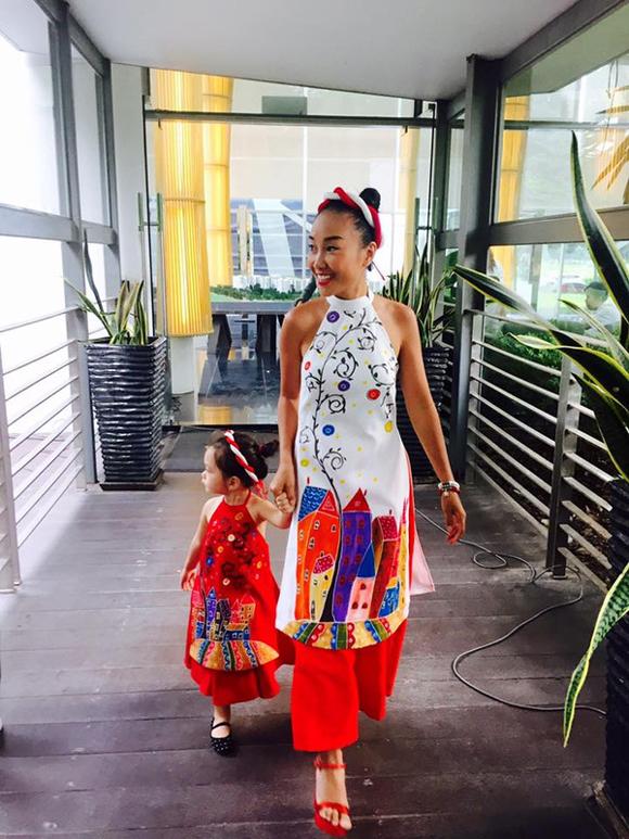 Đoan Trang và con gái "mê hoặc" người hâm mộ nhờ áo dài yếm cách tân.Các bà "mẹ