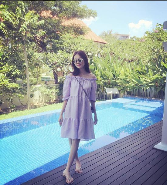 thêm đôi xăng đan thanh mảnh, túi đeo nhỏ tiện lợi. Phong cách của Thu Thảo là