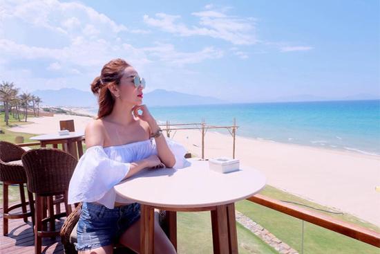 Minh Hằng gợi ý cho các bạn gái đi biển áo trễ vai, quần shorts jeans. Đây là hai