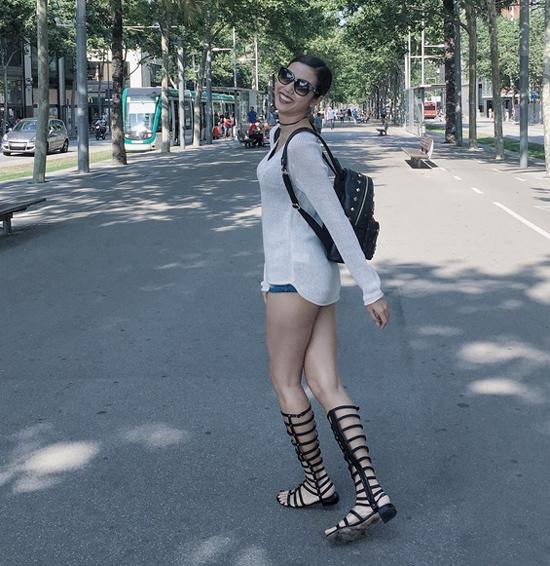 Á hậu Phạm Hồng Thúy Vân gây chú ý với style giấu quần shorts và xăng đan