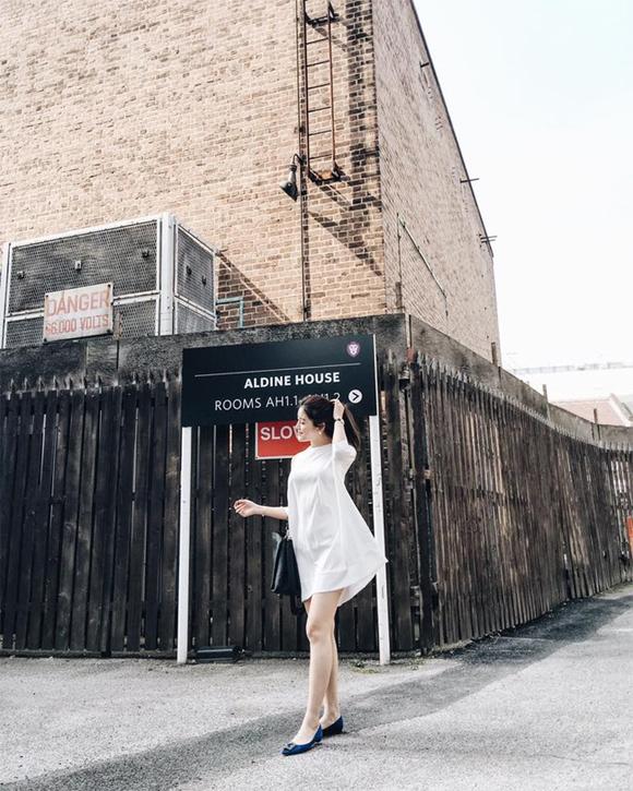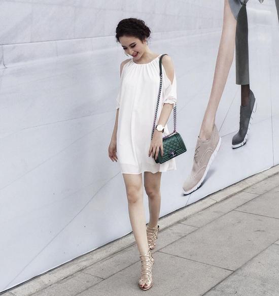 street style tuần qua. Angela Phương Trinh cũng lựa chọn một chiếc váy trắng
