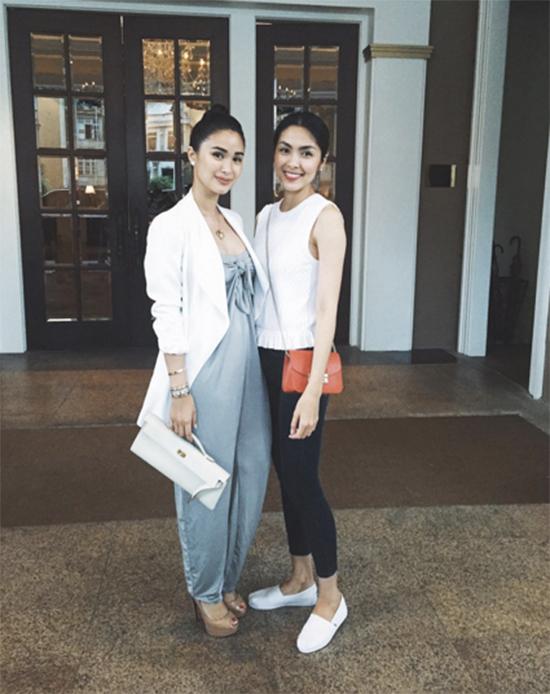 điệu đà gam màu trang nhã rất hợp với nhan sắc hiếm có của cô. Hoa hậu kết hợp