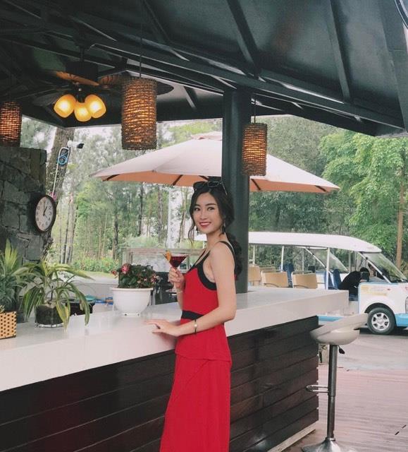 Hoa hậu Đỗ Mỹ Linh rạng rỡ trong sắc đỏ của đầm hai dây.