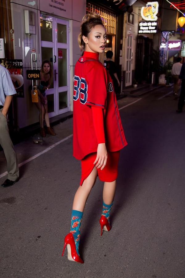 Trung thành với phong cách thể thao, Mai Ngô mix & match đồ đầy cá tính, ấn tượng. Đỏ là tone màu không thể thiếu trong tủ đồ của Á quân The Face.