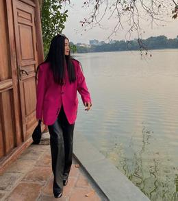 Tạm rời bỏ những bộ cánh bánh bèo, gợi cảm, Salim F5 xuất sắc với style menswear sành điệu. Cô phối quần ống suông và blazer phom rộng màu hồng cánh sen nổi bần bật.