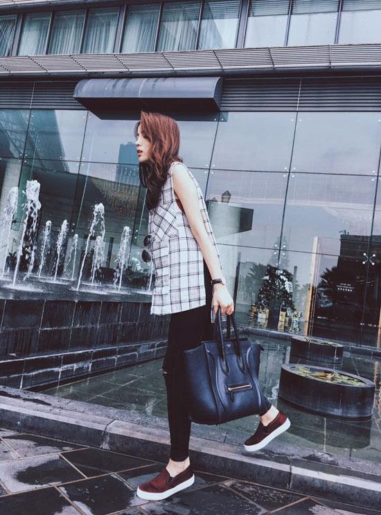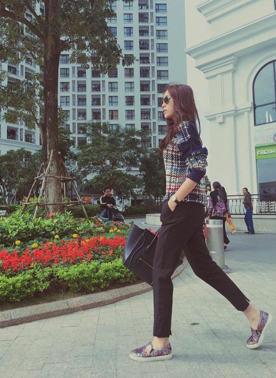 Cách phối đồ của Kỳ Duyên ở đời thường đơn giản, linh hoạt, năng động và luôn tạo cho cô cảm giác thoải mái nhất. Để thêm hoàn hảo, cô thường lựa chọn những đôi xăng đan bệt, giày slip on, giày thể thao... đi cùng túi mini, túi xách tay tiện lợi.