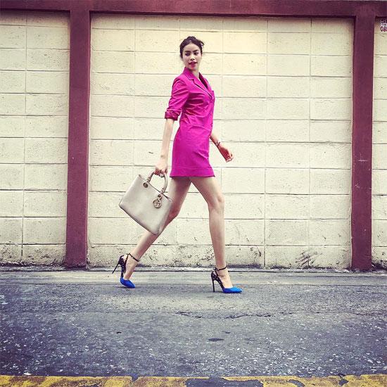 Phạm Hương không chỉ sở hữu gương mặt sang chảnh, nụ cười rạng rỡ mà còn có gu thời trang thanh lịch, quyến rũ. Nếu như ở các sự kiện, mỹ nhân gốc Hải Phòng thường lựa chọn những bộ đầm lộng lẫy thì ở đời thường, cô luôn tối giản mọi item nhưng lại có hiệu quả thẩm mỹ cao. Váy liền thân, váy dáng suông, quần short, váy xòe, jumpsuit... là style "trung thành' của Hoa hậu Hoàn vũ Việt Nam 2015.