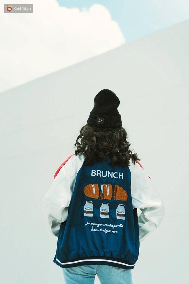 Cận cảnh chiếc bomber jacket thêu hình vừa tinh xảo lại vừa trendy của cô bạn. Bên