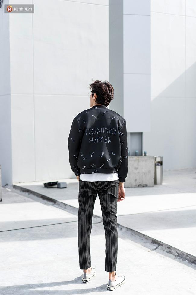 Set đồ với quần tây, T-shirt và bomber jacket của Từ Duy chính là combo tiêu