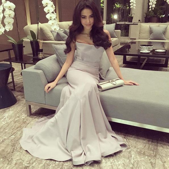 Với chiều cao lý tưởng khi đi dự tiệc dáng váy dài hay váy để lộ phần vai trần mang đến cho Wanida phong cách quyến rũ, sang trọng.