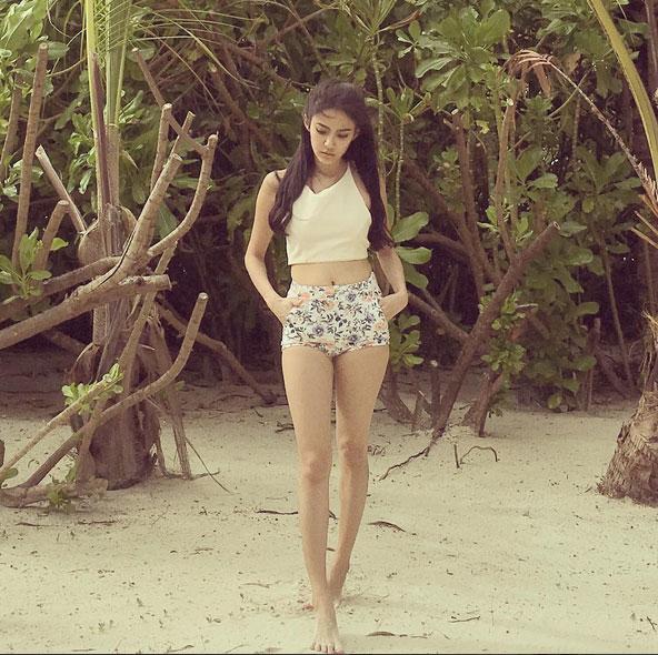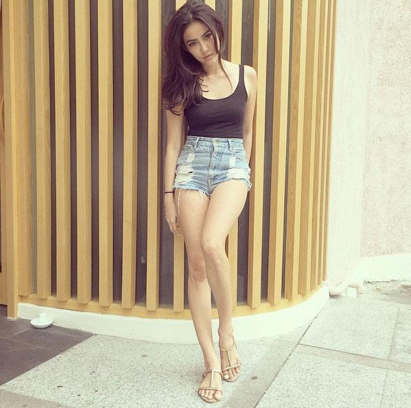 Một trong những item giúp cô nàng khoe đôi chân thon dài là chân váy ngắn, quần short jeans rách. Nếu sở hữu vóc dáng chuẩn bạn hoàn toàn có thể diện quần short jeans rách kết hợp cùng áo ôm sát hay áo crop top như Wanida.
