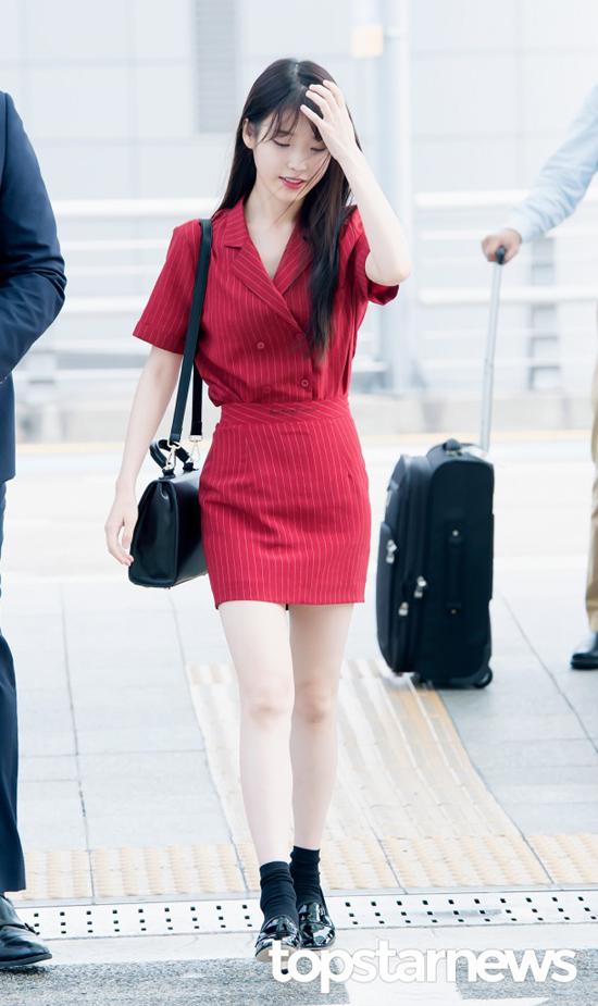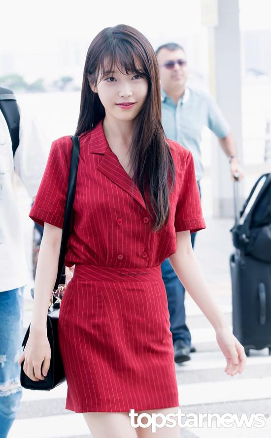 IU đã được chụp ảnh tại sân bay quốc tế Incheon khi bắt chuyến bay đến
