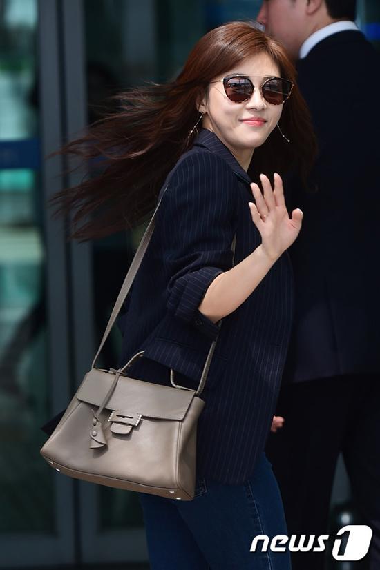 trở về từ Úc, nơi cô tham dự một buổi chụp hình. Suzy mặc một chiếc áo màu