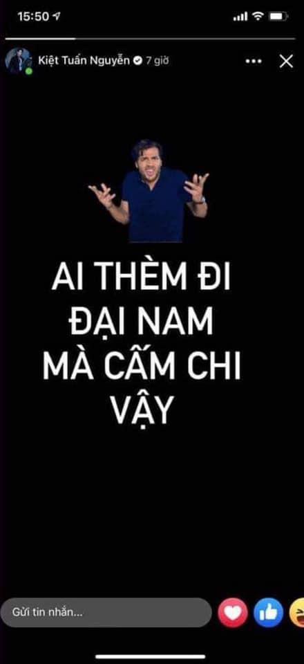 Mới nhất là khi stylist đăng story kèm dòng trạng thái: "Ai thèm đi Đại Nam mà cấm chi vậy?"