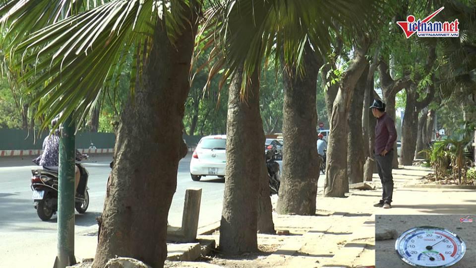 Ở đường Phạm Văn Đồng, lúc 13h30, nhiệt độ ngoài trời khi đặt nhiệt kế xuống đất, chỗ không có bóng cây, lên tới gần 60 độ C. Cũng trên tuyến đường này, dưới hàng cây xà cừ hàng chục năm tuổi, nhiệt kế đo được cùng thời điểm chỉ chưa tới 40 độ C.