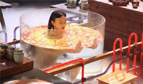 Tuy nhiên thực sự trong bồn tằm không hề có nước mà chỉ có những chiếc máy phun hơi nước mini được tổ đạo cụ chuẩn bị.