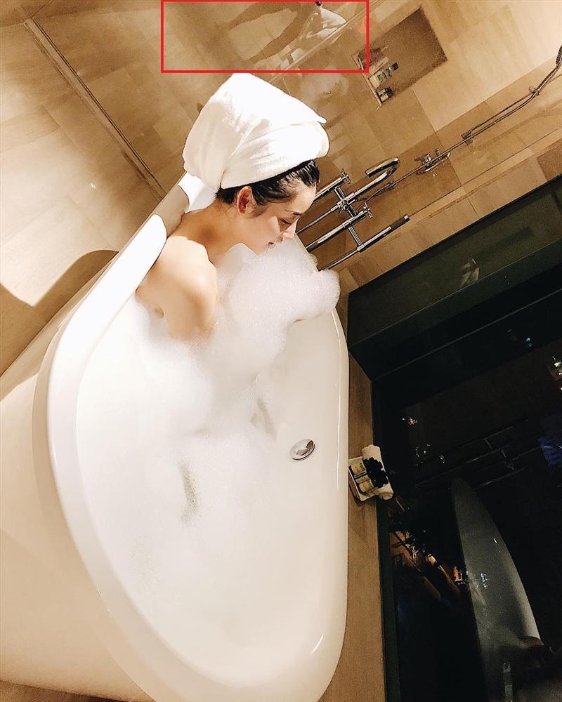 Tuy nhiên, điều khiến cộng đồng mạng quan tâm nhất trong bức ảnh này lại không phải là Huyền My. Rất nhiều "thánh soi" đã phát hiện ra đôi chân lực lưỡng được phản chiếu qua tấm kính trong suốt.