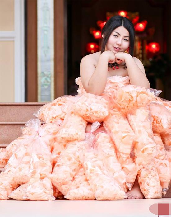Ngay sau đó, một nhà thiết kế trẻ 28 tuổi ở xứ Chùa Vàng tên là Sine Benjaphorn đã tự "đạo nhái' một thiết kế tương tự. Cô dựng nên chiếc váy với dải bánh phồng tôm xếp trong túi ni lông. Rồi đăng tải hình ảnh của mình trên mạng và nhận được phản hồi tích cực rằng vô cùng thú vị, sáng tạo.