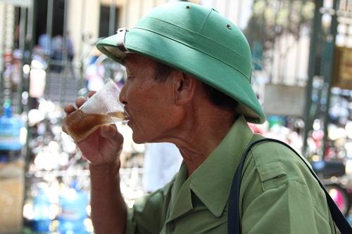 Những người lao động nghèo hưởng thụ cốc nước vối mát lạnh.