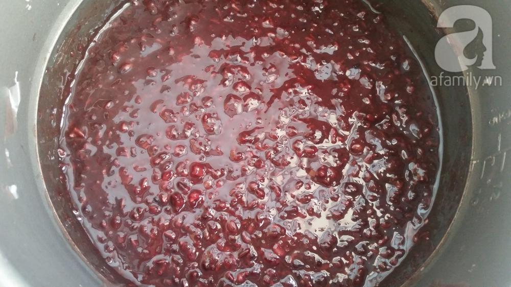 Khi thấy hạt nếp cẩm mềm nhừ, nước sánh đặc thì cho đường vào khuấy đều. Độ ngọt tùy theo khẩu vị. Để nếp cẩm sôi thêm 5 phút thì tắt bếp, để nếp cẩm nguội.