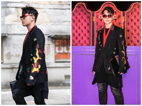 Kelbin Lei điển trai gây ấn tượng với set đồ biểu tượng đặc trưng của hãng thời trang Gucci.