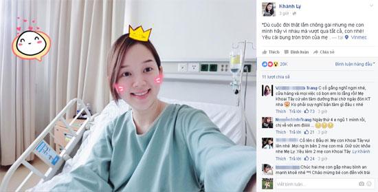 Mới đây, Ly kute đăng tải hình ảnh rạng rỡ, lạc quan khi nằm trong viện điều trị chờ ngày sinh con. Suy nghĩ tích cực, giữ cho tinh thần được vui vẻ là cách giúp bà mẹ trẻ vượt qua rất nhiều khó khăn trong thời gian qua. Ly kute viết: "Dù cuộc đời thật lắm chông gai nhưng mẹ con mình hãy vì nhau mà vượt qua tất cả, con nhé! Yêu cái bụng tròn tròn của mẹ."