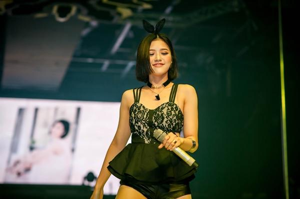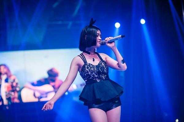 Diện trang phục đen ấn tượng, Suni Hạ Linh lựa chọn hình ảnh trẻ trung, đáng yêu nhưng không kém phần gợi cảm để xuất hiện trước khán giả.