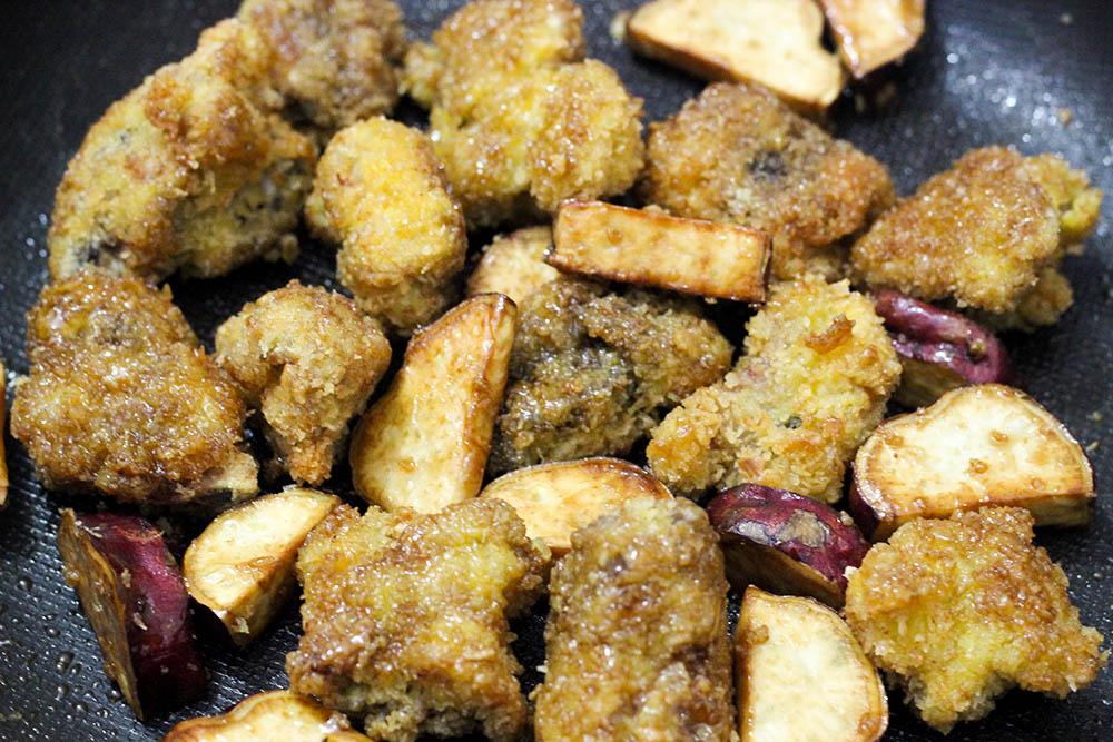 Sườn chiên giòn rụm, khoai lang bùi ngọt ăn kèm với sốt đậm đà khiến cho món chiên không hề bị khô và ngấy. Thêm vào đó, vị mặn ngọt vừa phải không những khiến người lớn mà cả trẻ nhỏ cũng thích mê món ăn này đấy! Chẳng thế mà nó khiến cho ai ăn một lần cũng mê tít.