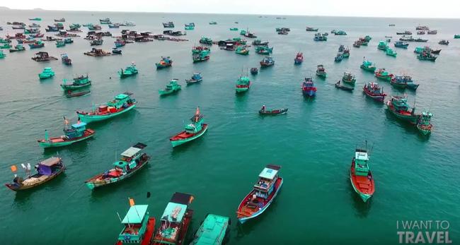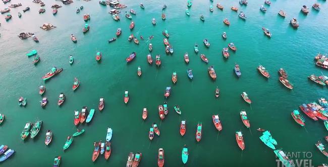 Màu nước xanh như ngọc, những con thuyền nhìn từ trên cao nhưng những họa tiết chấm phá cho bức tranh thiên nhiên thơ mộng.