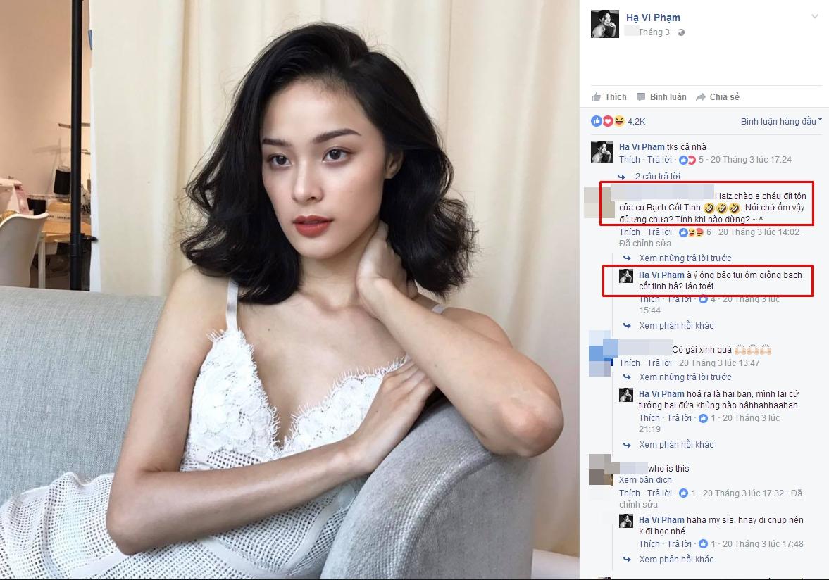Vóc dáng gầy guộc của Hạ Vi không chỉ đến ngày hôm qua mới bị bạn bè lên tiếng phê bình. Liên tục nhiều ngày trước đó, "nàng Tấm" phải đối mặt với nhiều lời phàn nàn của người thân. Thậm chí trong một cuộc trò chuyện, bạn của Hạ Vi còn gọi cô là "Bạch Cốt Tinh": "Chào em - cháu đích tôn của cụ Bạch Cốt Tinh. Ốm vậy đủ ưng chưa? Tính khi nào dừng?". Đáp lại lời người bạn, Hạ Vi hóm hỉnh: "À, ý ông bảo tôi ốm giống Bạch Cốt Tinh hả?".