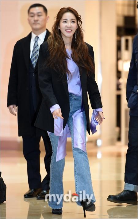 Dù đã 34 tuổi nhưng Dara vẫn vô cùng trẻ trung từ nhan sắc đến phong cách thời trang. Nữ ca sĩ đi đầu xu hướng cùng áo blazer kết hợp áo lụa sắc tím lavender và quần jeans ống loe tôn dáng.