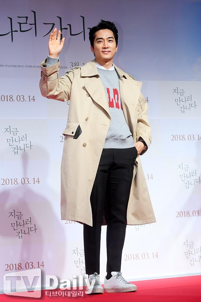 Song Seung Hun lăng xê nhiệt tình mốt áo trench coat trong công thức mix đồ layer. Nam diễn viên vẫn đốn tim cánh chị em bởi vẻ ngoài bảnh bao dù đã bước sang tuổi 42.