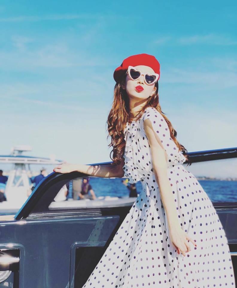 Suzy hóa tiểu thư ngọt ngào và nữ tính trong mẫu váy chấm bi chất liệu voan mềm mại. Điểm nhấn của bộ đồ là chiếc kính mắt hình trái tim độc lạ.
