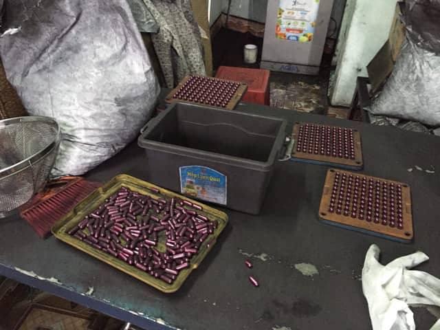 Theo cơ quan công an, cơ sở sản xuất này có 10 công nhân thực hiện việc đóng gói bột than tre, nứa vào viên nang thuốc, dán nhãn mác rồi đóng vào hộp và đưa đi tiêu thụ.
