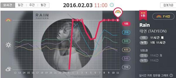 Bài hát "Rain" No.1 trên 8 bảng xếp hạng