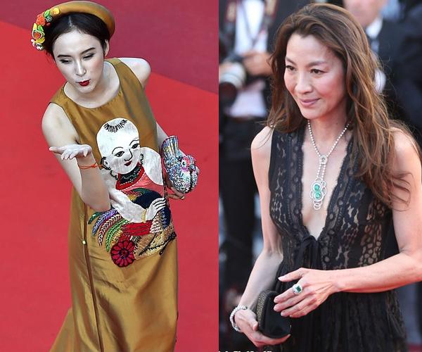 Điều khó hiểu là hai người hoàn toàn khác biệt nhau, trong khi Angela Phương Trinh trẻ trung lần đầu xuất hiện còn nữ diễn viên nổi tiếng Dương Tử Quỳnh đã ngoài 50. Đả nữ U60 xuất hiện trên thảm đỏ Cannes hôm 17/5, tự tin khoe vóc dáng trong một thiết kế cổ V. Cô tới dự buổi chiếu bộ phim "Julieta" của đạo diễn Pedro Almodovar.