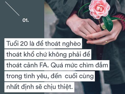 Hầu hết chúng ta học cách buông bỏ những nỗi sợ hãi và bất an này. Mọi người đều dành thời gian riêng để nhận ra họ đang ở trên hành trình độc đáo và chính tuổi 20 bắt đầu dạy cho bạn bài học này.