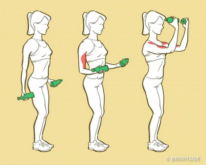 Động tác này sẽ tác động trực tiếp đến bắp tay trước của chị em. Các cô gái hoàn toàn có thể thay thế tạ nhỏ bằng hai chai nước với trọng lượng tương tương đấy.